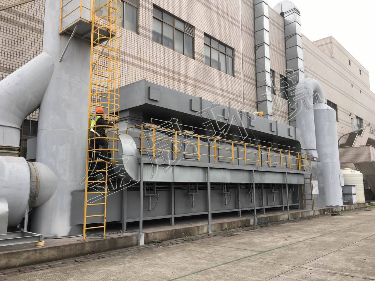 光氧催化:(1)利用高能高臭氧UV紫外线光束照射废气,裂解工业废气的分子链结构,使有机或无机高分子恶臭化合物分子链,在高能紫外线光束照射下,降解转变成低分子化合物。(3)光氧催化利用氧分子产生游离氧,即活性氧,因游离氧所携正负电子不平衡所以需与氧分子结合,进而产生臭氧。臭氧对有机物具有较强的氧化作用。工业废气输入到净化设备后,净化设备运用高能UV紫外线光束和臭氧对工业废气进行协同分解氧化反应,使工业废气降解转化成低分子化合物、水和二氧化碳,再通过排风管道排出室外。